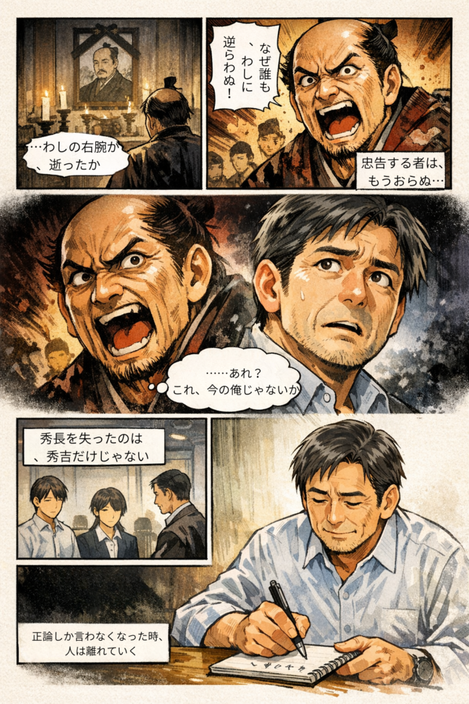 重臣の意見を聞かず、ましてや粛清の嵐ならば、誰だって身の保身をはかり、モノを言わなくなります。人が離れかけていた矢先の、朝鮮半島へのムダな戦(いくさ)も拍車をかけました。また後継ぎ問題も非常に影響しましたし、「自分で天下を手放した」と言っても過言ではありません。